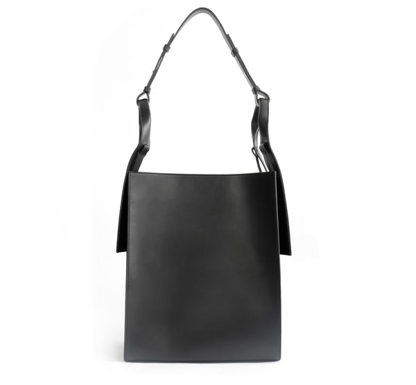 Shoulder bag in eco faux-nappa. The lining is a soft twill, 100% made from recycled plastic bottles. One shoulder handle. Flap closure with hidden magnetic fastening. Interior pocket with metallic zipper. Silvertone hardware. Handmade in Portugal.